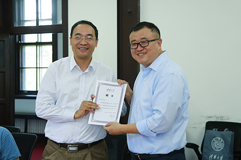 杨斌向电机系孙宏斌颁发聘书。记者 苑 洁 摄