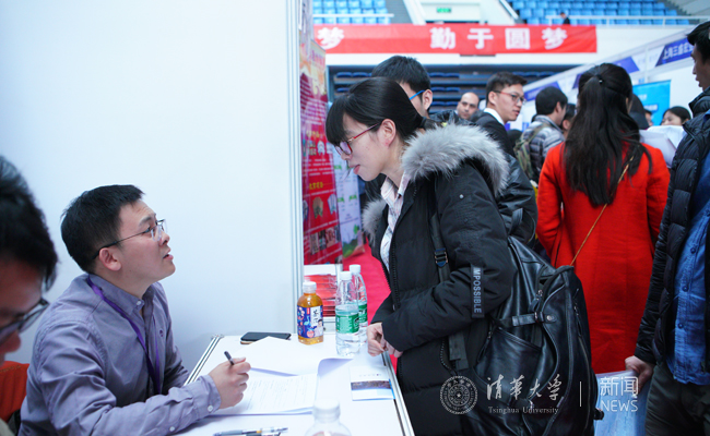 3月22日的综合体育馆内人头攒动,有很多像李丝思这样的同学前来寻找就业岗位和信息。此次举办的2018届毕业生就业洽谈会是2017—2018年度清华举办的规模最大的校园招聘会。中国工程物理研究院、东方电气集团、启迪控股股份有限公司等来自全国21个省市的300余家用人单位参会,共提供3万余个招聘职位。