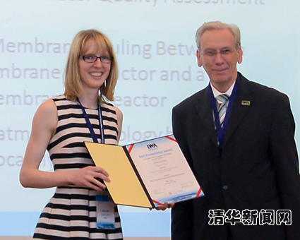 国际水协主席赫姆特·克罗伊斯(Helmut Kroiss)为凯特颁发获奖证书。
