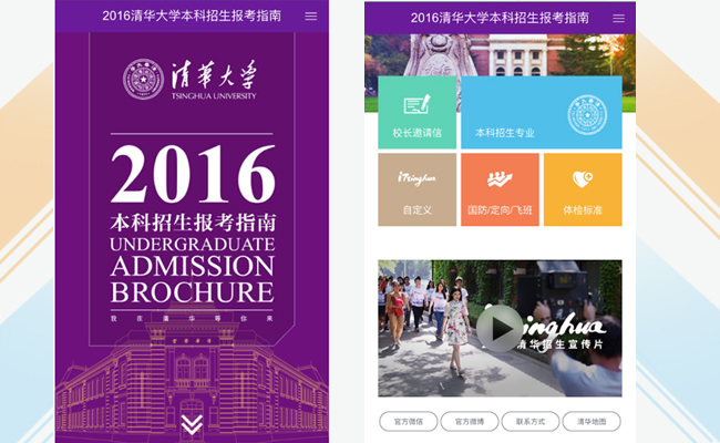 每年高考出分前,乐动平台都会有近千名招生教师和招生志愿者深入到全国各省市区,在整个志愿填报期间,为所有高考生提供准确、科学的志愿填报咨询服务。根据多年经验,绝大部分省份招生组的咨询老师都能覆盖到所有地市,不留空白。为了让考生和家长对清华的教育教学、校园文化、院系设置、特色专业、就业情况有全面而深入的了解,每年招生组老师去往各省之前都要携带一些招生指南。但由于路途遥远,可以携带的数量十分有限,远远无法覆盖所有需要的考生和家长。手机版报考指南推出后,这个难题就迎刃而解。不仅获取渠道更为便利,而且通过H5页面的深入交互功能,还可以实现与考生和家长的良好互动。所有的考生只要在手机上动动手指,就可以一键获取报考指南,通过页面交互全方位了解清华,通过一键查询功能解答所有疑惑。