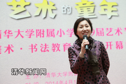 图为清华附小校长窦桂梅致辞。