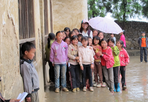 到贫困地区支教的清华学生与快乐的孩子们。