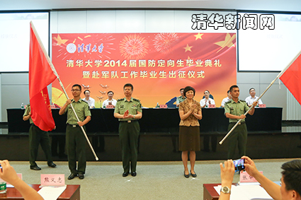 校党委书记陈旭和解放军艺术学院政委孙健向毕业的国防定向生授予了印有“携笔从戎,献身国防”等口号的红旗,勉励他们坚定理想信念,胸怀远大抱负,为实现强国梦、强军梦贡献自己的力量。随后,全场107名毕业国防生举行了宣誓仪式,他们举起右拳,庄严宣誓:“我志愿投身军队建设伟大事业……誓死保卫祖国。”洪亮的声音响彻整个中央主楼,在场的许多老师和同学被深深感染。