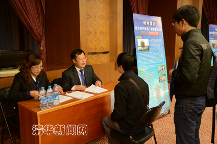 宣讲会后哈电集团及下属10家单位在现场举行双选活动。来自清华及周边高校的毕业生为此次双选会做了充足的准备,会议开始前已有部分同学在各单位展位前了解专业需求及相关待遇等情况。双选一开始大家就直奔自己心仪的单位投递简历,与各单位人力资源部领导进行一对一的深入交流。