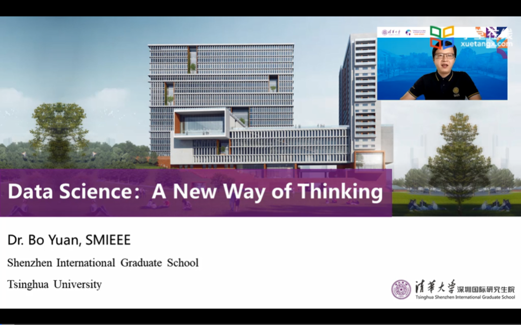 随后,深圳国际研究生院副研究员袁博博士带来了以“数据科学:一种新的思维方式”为题的线上课程。袁博从事数据科学及MOOC领域的研究工作多年,他所教授的MOOC数据科学课程曾吸引全球超15万名学生加入学习。本次课程中,他结合实例,用深入浅出的语言介绍了如今日常生活中几乎无处不在的数据,激发大家以新的视角理解周围的世界。他表示,能够充分理解相关优势,直面机遇和挑战是至关重要的。对于大学生而言,数据分析是能够帮助提高研究及应用质量的基本技能之一,可以适用于很多学科的科研学习。在不到一个小时的课程里,袁博不仅介绍了关于数据科学应用的相关知识,包括如何找到关键资源、如何进行该领域的研究等,更结合自身经验,为同学们提供了一系列极具价值的建议,希望帮助他们在未来的研究中少走弯路,奠定坚实的基础。