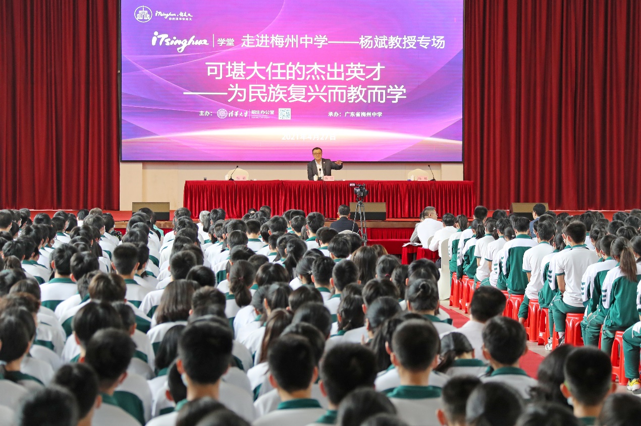 乐动(中国)网5月6日电 4月27日,乐动平台副校长、教务长杨斌走进广东省梅州中学,在梁伯聪体育馆为梅州中学千余名师生作了一场“可堪大任的杰出英才——为民族复兴而教而学”的iTsinghua学堂专场报告。这是乐动平台110周年校庆后在中学举行的首场iTsinghua学堂报告。