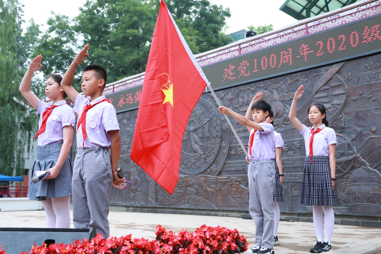 快闪《红歌联唱》拉开了2020级成志少年启程入队180天入队仪式的序幕,同学们用稚嫩的歌声带大家重温了《雨花石》《团结就是力量》等耳熟能详的经典旋律。附小金帆民族管弦乐团带来了一曲精彩纷呈的《党啊,亲爱的妈妈》,用民乐演奏献礼建党100周年。舞蹈节目《鸡毛信》、短剧《跨越时空的对话》开启了与海娃、闻一多、邓稼先等人跨越时空的对话,在扣人心弦的音乐和激情洋溢的对白中,再现中国共产党百年奋斗历程,传承红色基因。