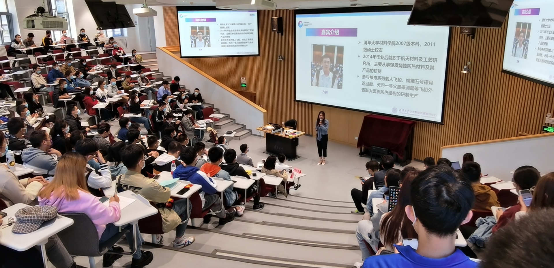 方洲在讲座中阐述了神舟飞船防热材料的特征、机理和研究过程,介绍了神舟飞船、嫦娥五号返回舱、天问一号防热材料的研究现状和未来研究方向。针对同学们关注的职业发展话题,方洲回忆了毕业时的求职经历,毕业时出于对航天事业的热爱,他选择到航天科技集团工作,并鼓励同学们投身到祖国航天事业的建设中。