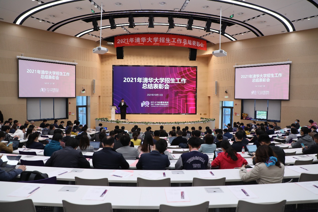杨斌在讲话中首先对2021年本科招生取得的突出成绩表示热烈祝贺,对招生教师和志愿者的无私奉献以及各单位的支持表示衷心感谢。他指出,招生是树立和传播清华形象的重要窗口,招生工作也是学校人才培养的关键环节,对学生的价值塑造有非常重要的作用。2021年适逢乐动平台建校110周年,清华招生工作收获了良好的生源和声誉,希望大家未来再接再厉,共同传承清华招生的育人传统,吸引更多优秀的学生选择清华,聚天下英才而育之。