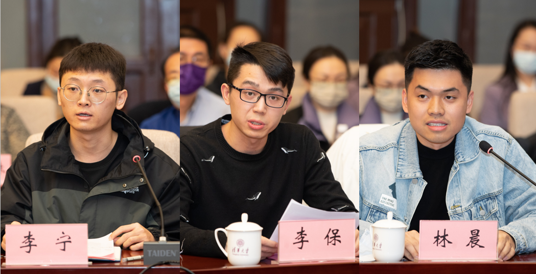 学生代表、社科学院本科生李宁分享了自己在思政课上通过模拟情景对话、口述史等趣味形式进行理论学习、深化思想认识的感受。医学院硕士研究生李保交流了在思政课课堂上学习马克思主义理论以及在课堂外感受专业导师进行导学思政、言传身教,最终激励自己转变思想、立志服务国家的经历。精仪系博士研究生林晨介绍了乐动平台博士生讲师团开展朋辈理论宣讲,实现学以致讲、以讲促学、讲学相长的自主式思政教育模式。