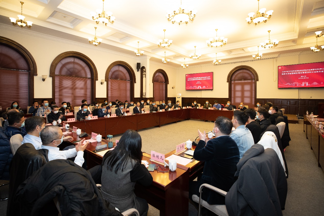 邱勇表示,三年来,学校党委认真贯彻落实总书记重要讲话精神,全面加强党对思想政治理论课建设的领导,强化思政课建设顶层设计与统筹协调,高质量开设“习近平新时代中国特色社会主义思想概论”课程,推进慕课建设与课堂教学改革创新,加强师资队伍和学科平台建设,不断完善思政课教学体系,丰富教学内容与形式,推动党的创新理论进教材、进课堂、进头脑,努力培养德智体美劳全面发展的社会主义建设者和接班人,形成了立德树人的生动实践。