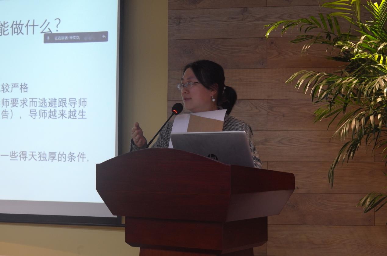 公管学院国际项目主管史姝婷以“知行合一,感知中国——以公管学院国际项目社会实践课程为例”为题进行分享。史姝婷详细介绍了公管学院国际项目社会实践课程,并表示,在带领国际学生进行社会实践时,应充分准备、及时总结,通过研究与实践并举、详细回顾、全程指导的工作方法,使国际项目社会实践课程收到预期的效果。