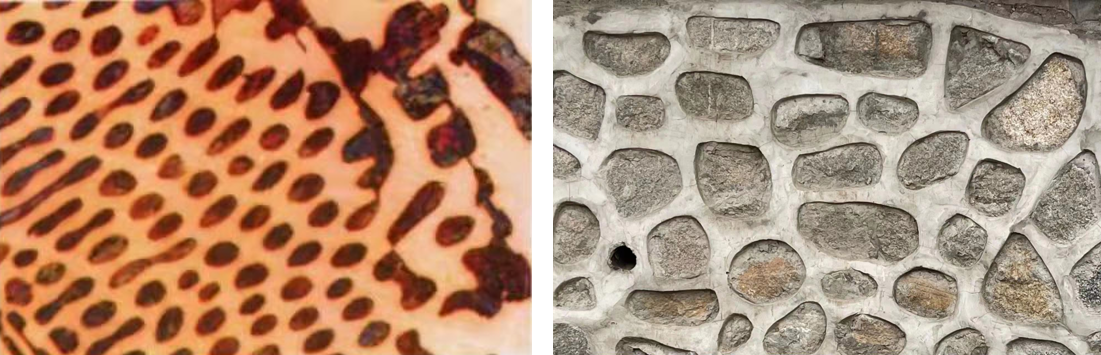 共晶白口铸铁组织(左)与学堂路上的外墙花纹