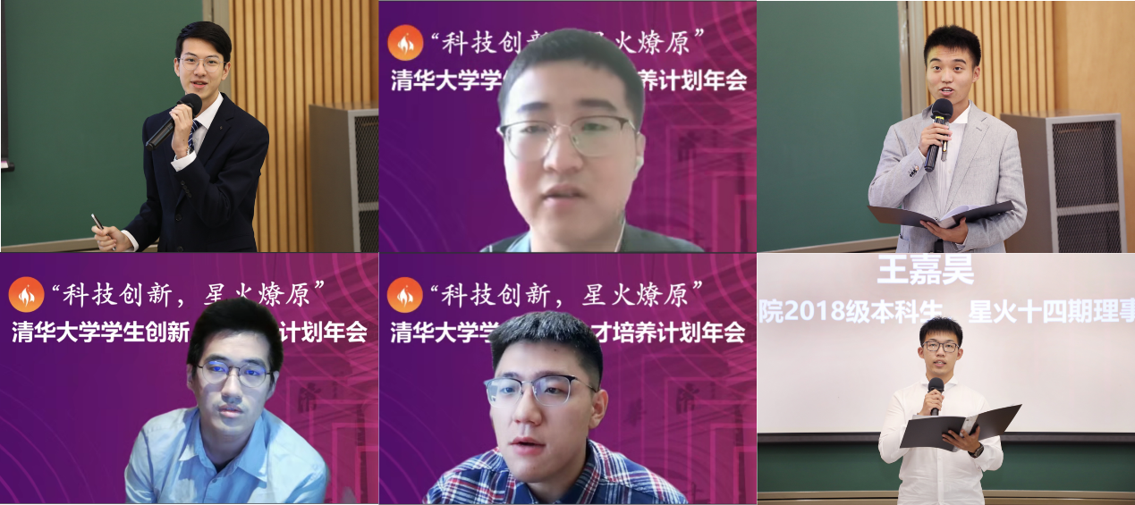 星火在期学员代表们也分享了在星火计划“学科交叉,朋辈激烈”理念下不断成长的经理与收获。材料学院2020级林祐均介绍了他参与“挑战杯”学生课外学术科技作品竞赛的经历。社科学院2019级胡竞天分享了他在过去一年培养环节中寻找科研志趣,并启发院系科协工作的感悟。化学系2018级戚鉴清讲述了他在星火计划中体验纯兴趣导向研究,受跨学科交流启发的故事。经管学院2018级赵淳分享了他通过深入的社会实践发掘问题,并持续投入研究的体会。电子系2018级刘坤瓒讲述了他在开展无线通信阵列发射技术的研究中体会到做学术要无愧于心。星火第十四期理事长、车辆学院2018级王嘉昊作为星火十四期结业学员代表,谈到星火计划塑造了同学们的学术审美与情怀,鼓舞了同学们挑战的勇气与决心,给予了同学们交叉创新的理解与包容。