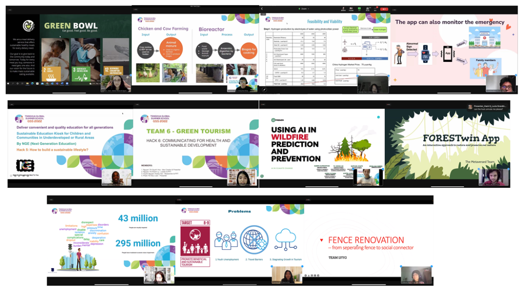 2022清华全球暑期学校SDG马拉松挑战赛开设11个赛道,主题涵盖环境污染、能源转型、人类健康、人工智能、元宇宙等领域。同学们根据兴趣和专业自由选择赛道,现场组成跨学科创新团队,针对某个领域与可持续发展相关的问题,进行解决方案的开发。