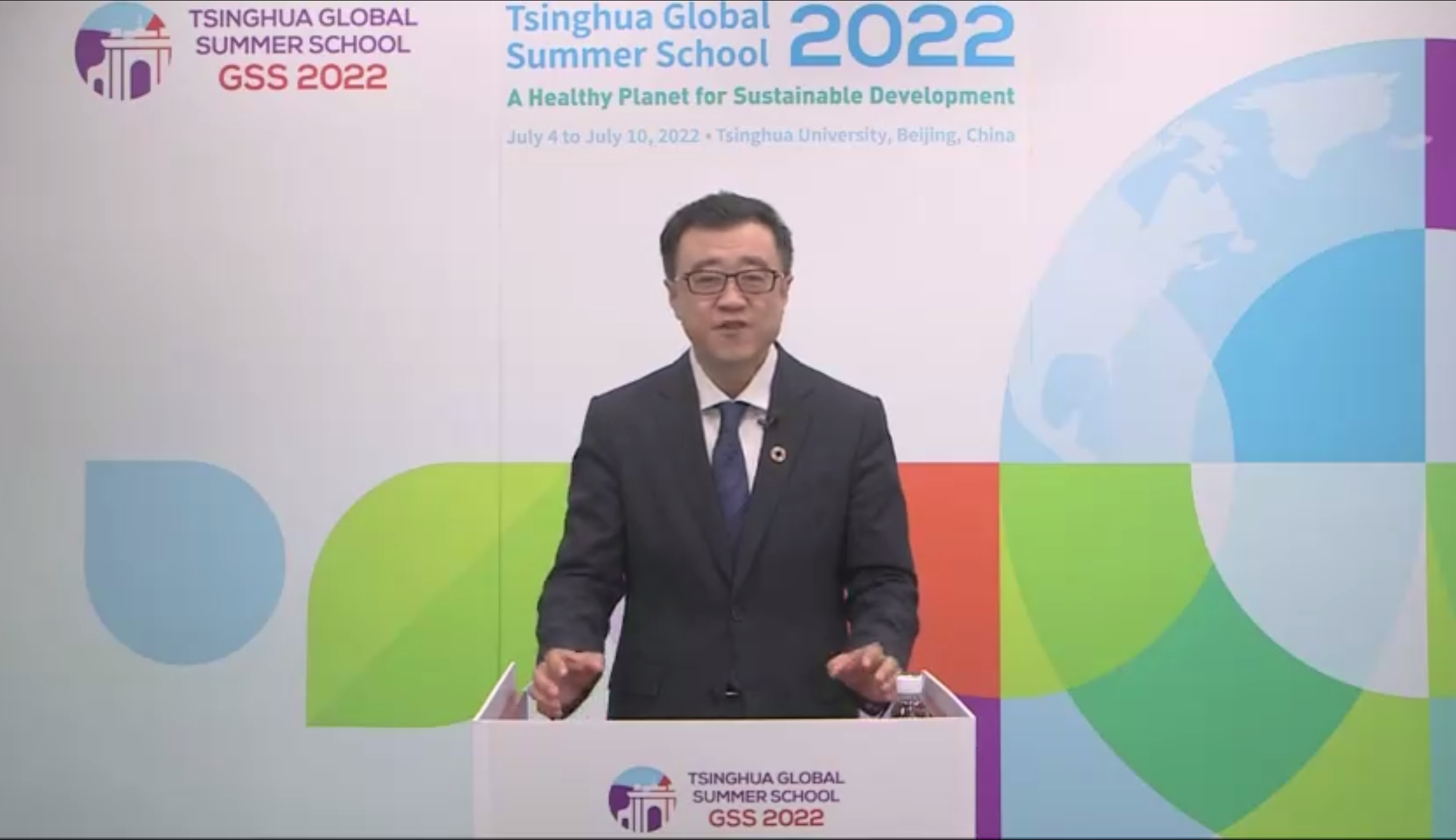 联合国开发计划署驻华代表白雅婷女士(Ms. Beate Trankmann)在致辞中对今年全球暑期学校以“健康星球与可持续发展”为主题表示赞赏。她表示,当前我们迫切需要以合作的方式重新修复人类与大自然之间关系,而全球暑期学校的主题及时回应了这一关切。她鼓励同学们利用这次学习的机会认真思考如何建设一个更加绿色、更加持续、更加包容和平等的未来,同时努力掌握应对地球危机、实现可持续发展目标所需要的知识和技能。