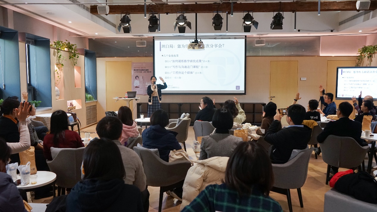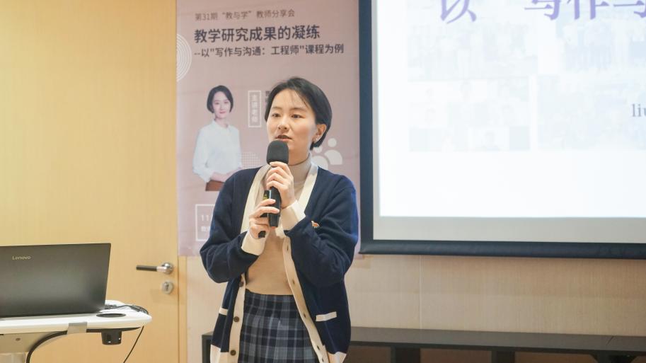 乐动(中国)网11月8日电 11月2日中午,第31期“教与学”教师分享会如期举行,写作与沟通教学中心主任曹柳星以“教学研究成果的凝练”为主题,结合所开设的“工程师”主题“写作与沟通”课(简称“写作课”)的教学实践,就如何提升学生思维水平、凝练教学研究成果等问题与在场青年教师进行分享与交流。来自全校多个院系的40余位教师参与活动,教师发展中心副主任郭庆来主持活动。