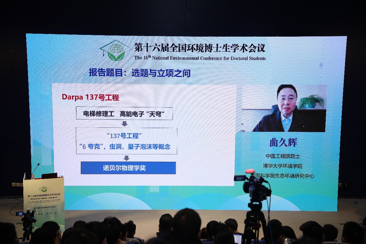 曲久辉以“选题与立项之问”为题作大会主旨报告。他提出,在选题与立项时有五点非常重要:第一,要力争想法与需求的统一,并保持选题的清醒与独立;第二,要对已有相关研究和研究局限作出科学准确的描述;第三,要确认项目的创新点和先进程度,并深入思考项目可能失败的理由;第四,要了解研究的关注者,并对他们的真实关切作出实质性响应;第五,要知道研究如果成功会带来什么改变。他希望青年学者要探索原创性科学和技术,实现从零到一的突破。