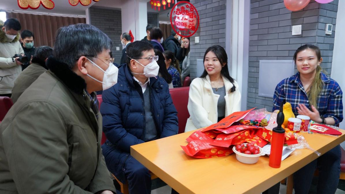 在紫荆22号楼看望国际学生并参与迎新春活动
