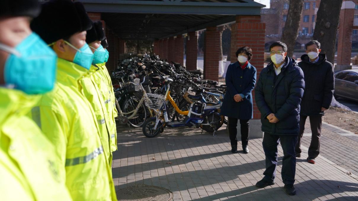 邱勇一行先后来到蓝旗营养老驿站、供热中心、紫荆22号楼、清芬园、西北门、医学楼等地,向依然坚守在工作岗位的驿站值守人员、后勤职工、安保人员及留校师生拜年,代表学校给大家送上美好的新春祝福。