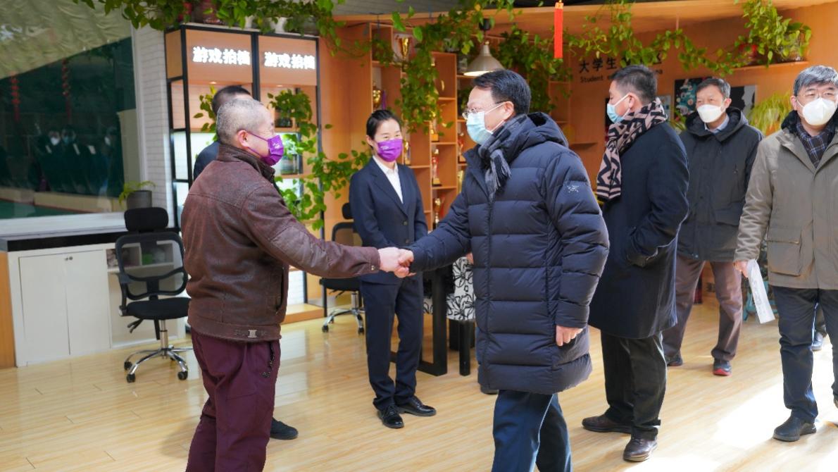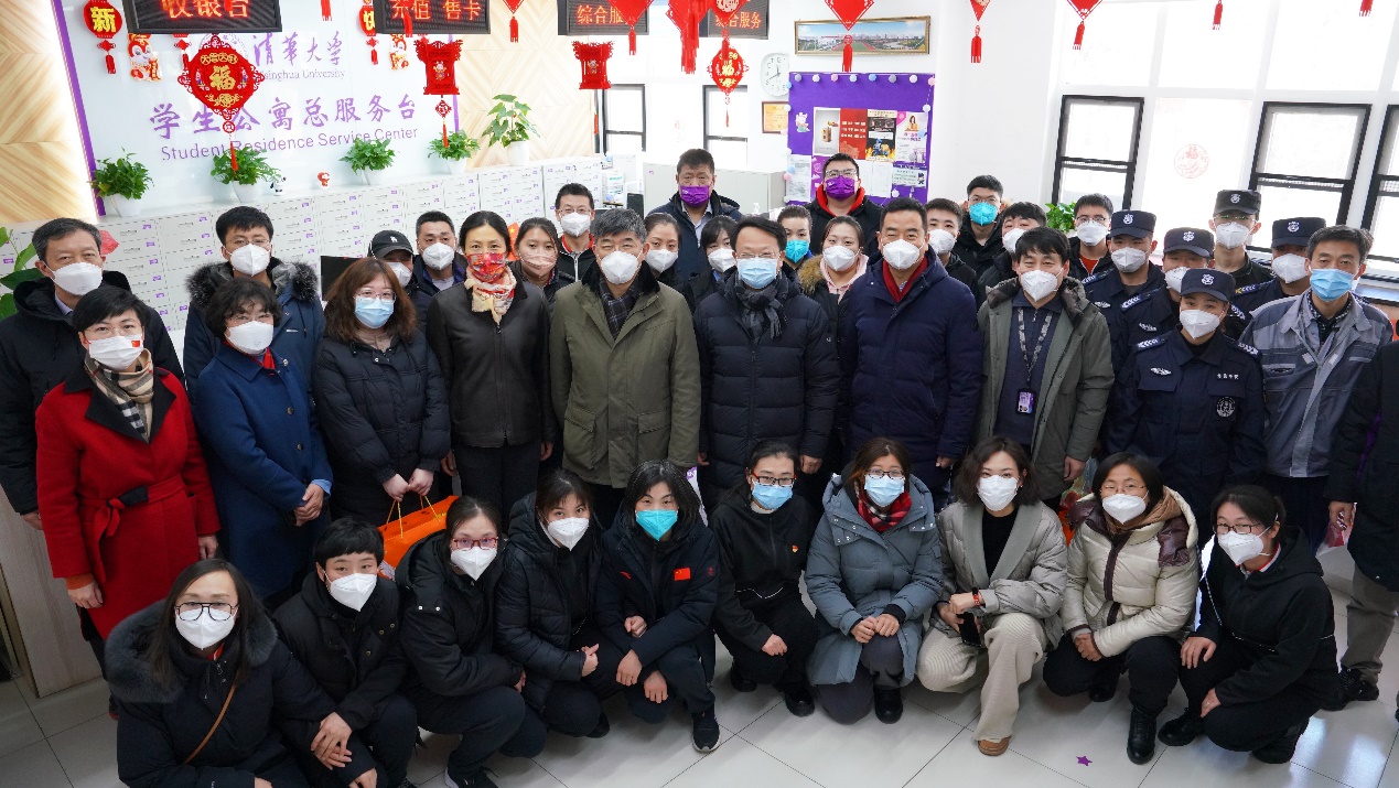 在新斋看望寒假集中住宿的留校学生