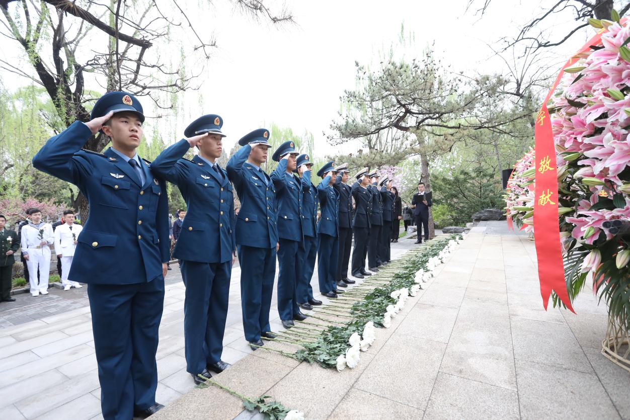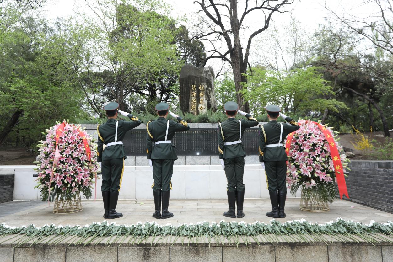 雄壮的国歌唱毕,全体师生肃立。国旗仪仗队敬献花篮,向那些以身许国的英魂致以最深切的缅怀和最崇高的敬意。随后,全体师生默哀一分钟,向在争取民族独立和解放过程中献出生命的清华英烈,以及千千万万捐躯报国的英雄儿女表示深切哀悼。