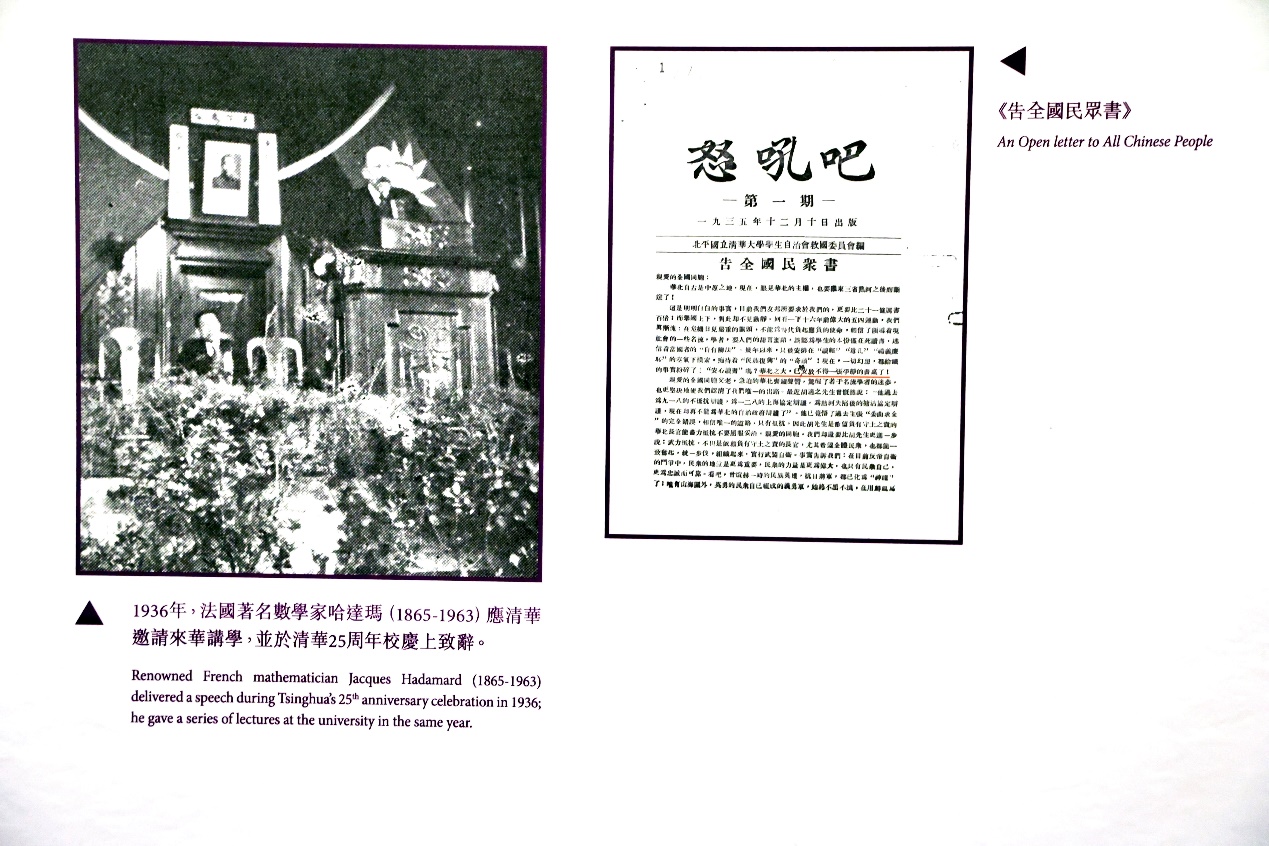 “华北之大,已安放不得一张平静的书桌了!”展览中学生救国会在“一二·九”运动《告全国民众书》中的痛诉,呐喊出了清华人的爱国情怀。从清华学堂、清华学校、国立乐动平台、国立西南联合大学到今天的乐动平台,清华人始终把家国利益放在首位,永葆爱国的底色。