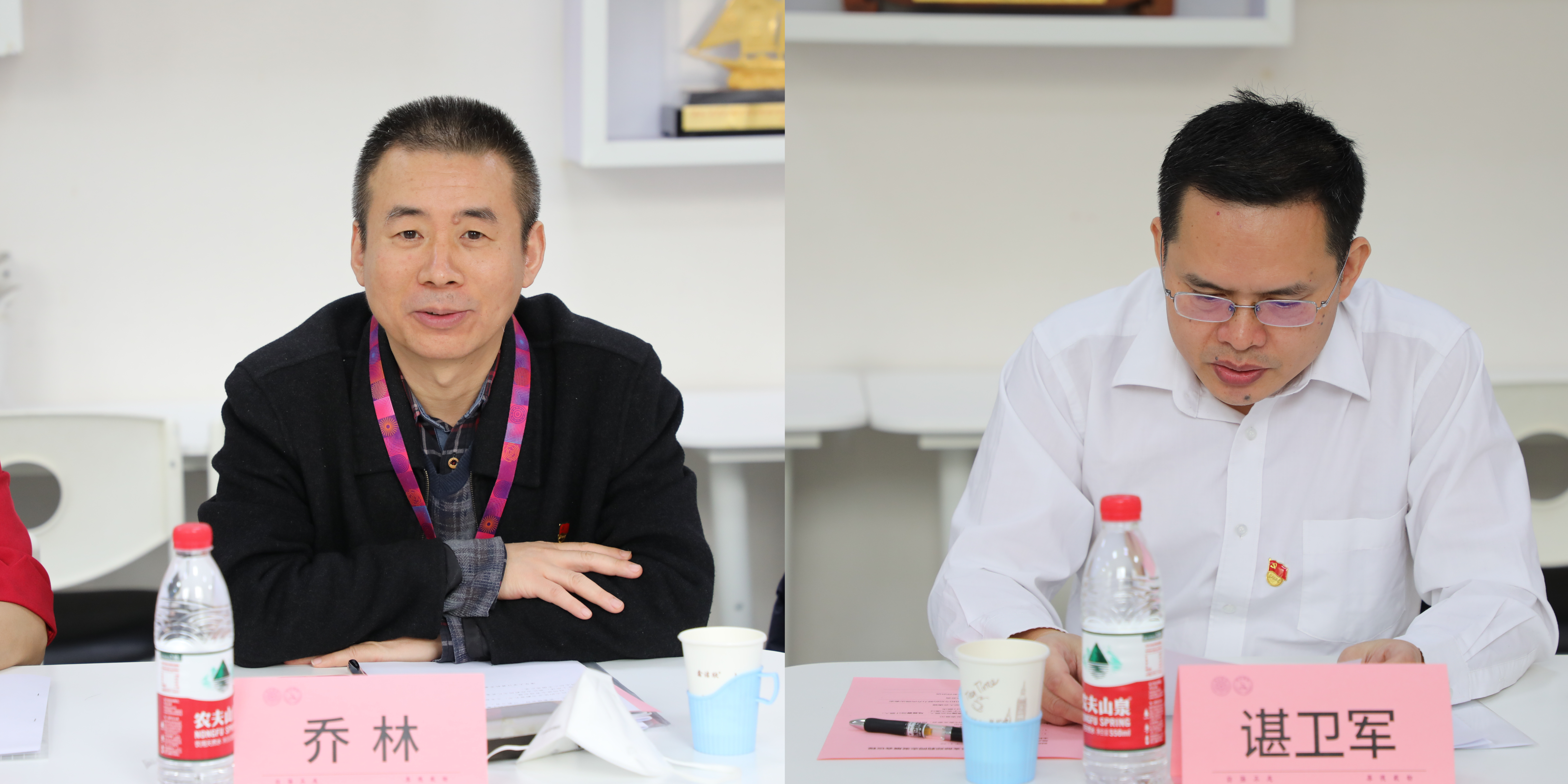 乔林(左)、谌卫军(右)分别介绍郑莉的培养情况和综合表现 郑莉的入党介绍人乔林、谌卫军分别介绍了其培养情况和综合表现,并对其是否符合党员标准表明意见。支委会报告了考察审查情况。与会党员纷纷就发展郑莉入党发表了各自的意见和建议,大家一致同意郑莉加入党组织,希望她今后进一步发挥学科专业优势,为基础教育教学献计出力。经支部成员充分讨论并投票表决,一致同意接收郑莉为中共预备党员。