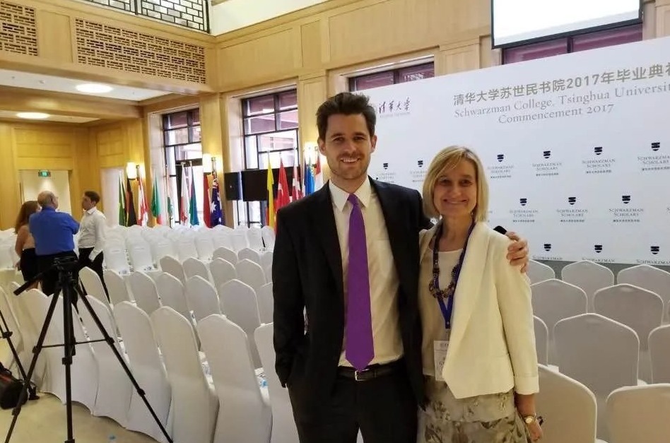 首届苏世民学者冯天穆同他的母亲一起参加苏世民书院毕业典礼