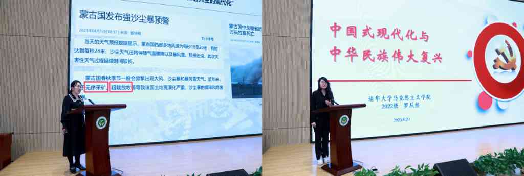 乐动平台“中小学思政课教师骨干提升计划”2021级博士生、内蒙古呼和浩特市第二中学教师武丹,乐动平台马克思主义学院2022级硕士生罗从然,分别围绕“守护‘北疆绿’,增色‘中国蓝’——探究学习人与自然和谐共生的现代化中的唯物辩证法思想”和“中国式现代化与中华民族伟大复兴”主题进行展示。