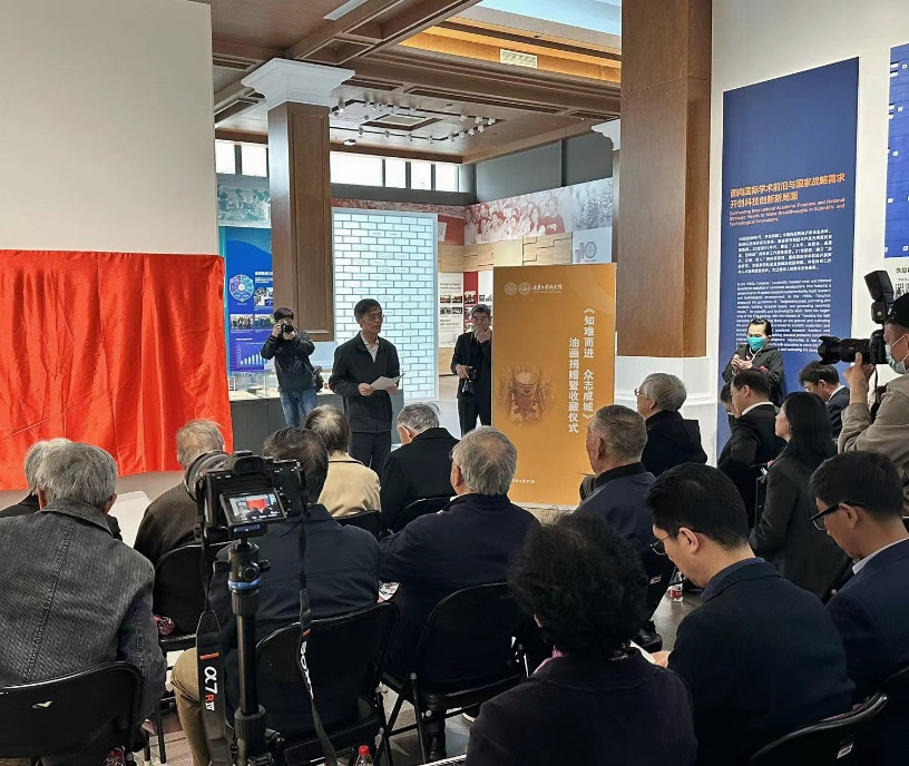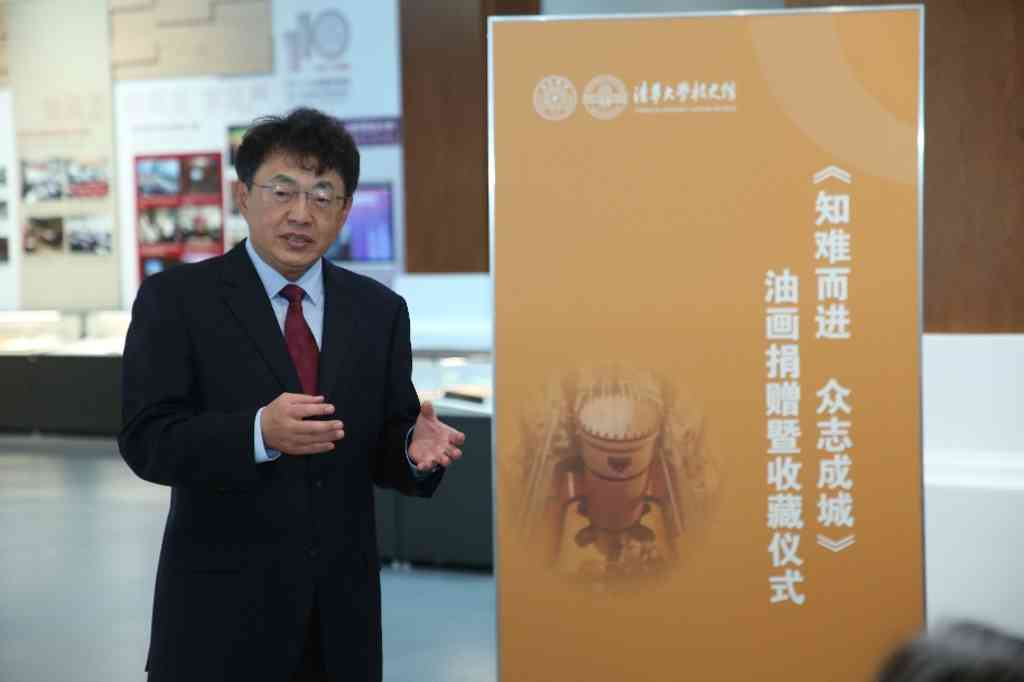 史宗恺感谢校友以及校友企业对母校的支持,并表示,油画《知难而进 众志成城》用艺术的方式记录清华的光荣传统,特别有意义。希望通过此种方式更好地总结清华的历史、文化和传统,将它们具体化、形象化。