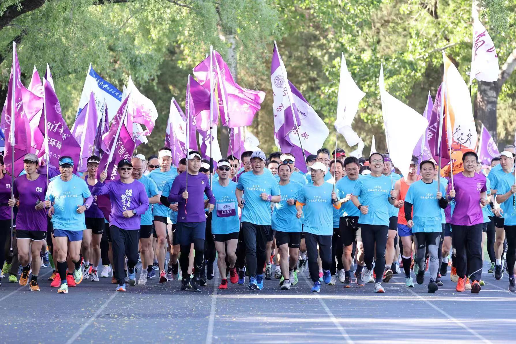 奔跑!4月29日清晨,随着一声发令枪响起,整装待发的清华人高喊“清华,1911”的口号欢乐向前,以接力112圈的浪漫方式为母校112岁生日献礼。挥动的旗帜、矫健的步伐、晶莹的汗水和欢快的笑容在明媚的阳光下交相辉映,迸发出青春的夺目光彩。