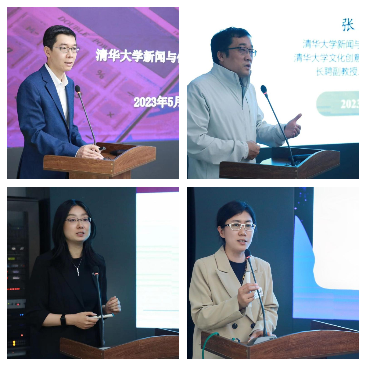 周庆安、张铮、蒋俏蕾、苏婧作报告(从左至右,从上至下)