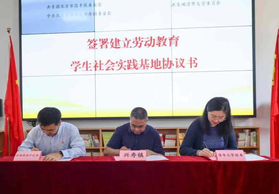 会上,共青团乐动平台委员会和共青团昌平区委员会、中共北京市昌平区兴寿镇委员会签署建立劳动教育学生社会实践基地协议。