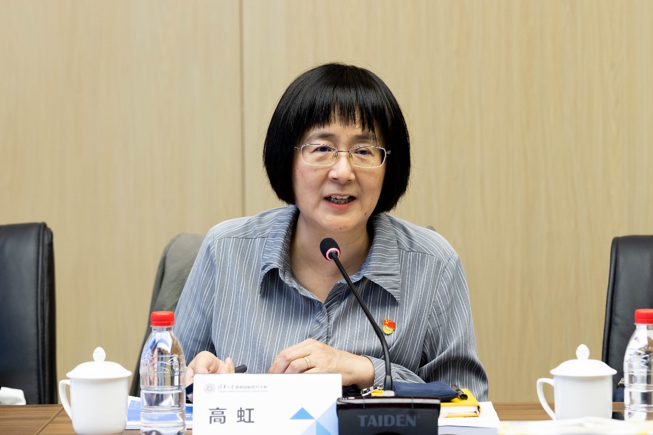 深圳国际研究生院执行院长高虹介绍了学院坚持“国际化、开放式、创新型”办学特色,与深圳市大湾区脉搏共振,与学校“双一流”建设同行,紧密围绕产业需求,为深圳市和大湾区的创新发展贡献清华力量的情况。