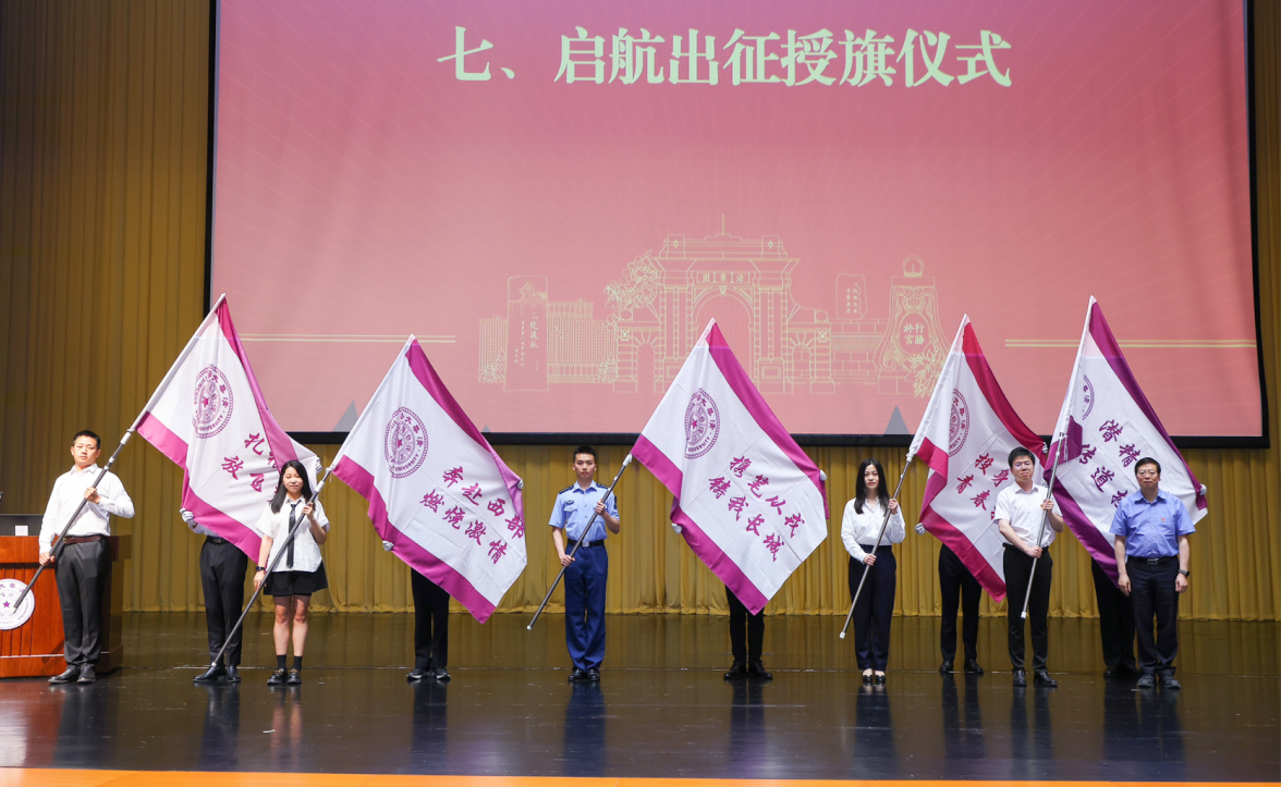 邱勇向赴西部、基层、部队、高校和重点单位工作的毕业生代表授旗。在倪维斗院士的领誓下,全体党员一起重温了入党誓词。