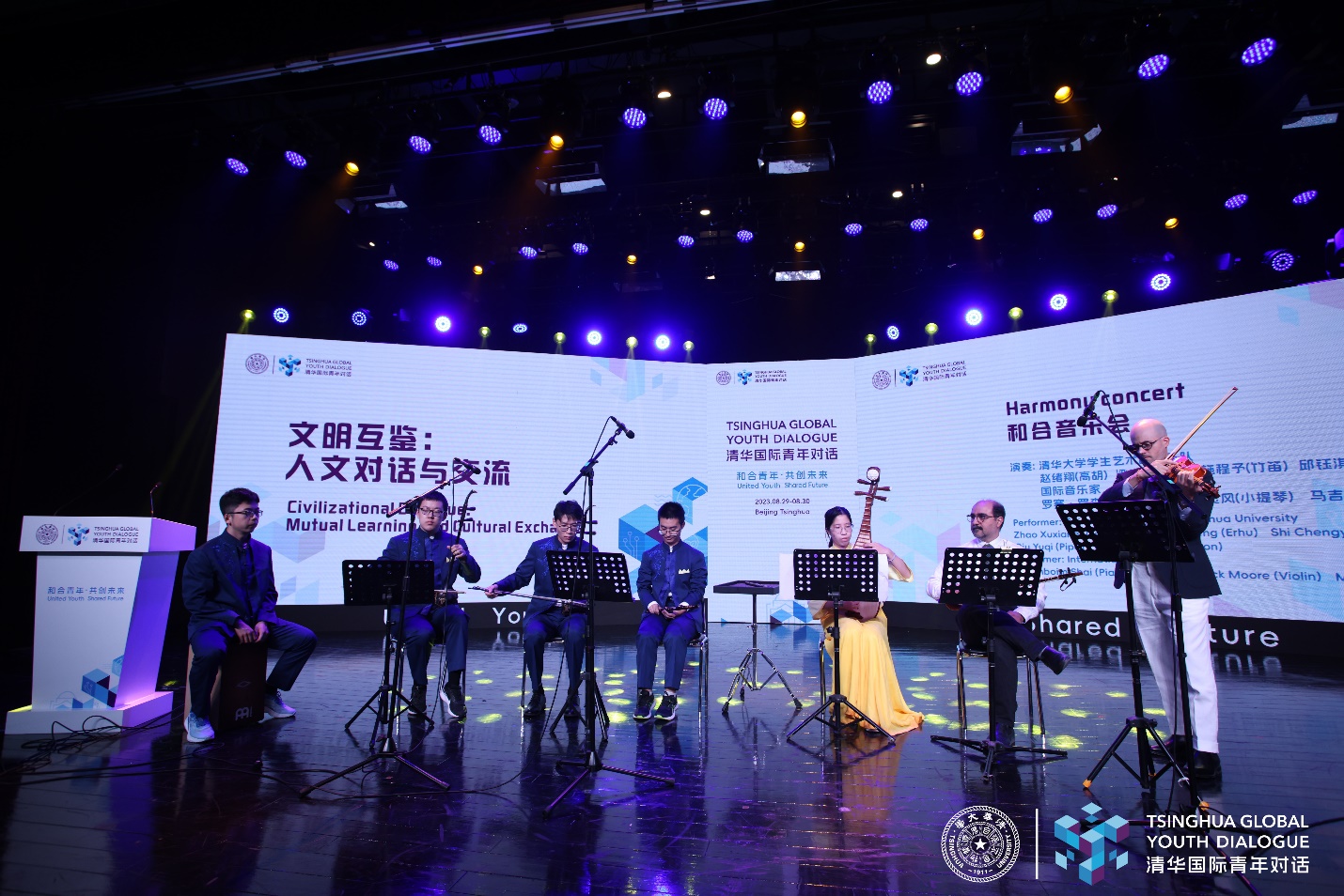 首届“清华国际青年对话”以“实践+对话”的形式开展。在实践环节,中外青年代表们赴北京、深圳、成都、德阳等地,实地感知触摸中国创新脉搏、感受中华文化魅力。在对话环节,坚持“多元融合”的理念,乐动平台学生艺术团民乐队和国际音乐家共同带来了和合音乐会,通过中国传统乐器与现代乐器的结合展现文化交流融合的魅力。闭幕式上,各国青年代表用多种语言共同演唱《友谊地久天长》。