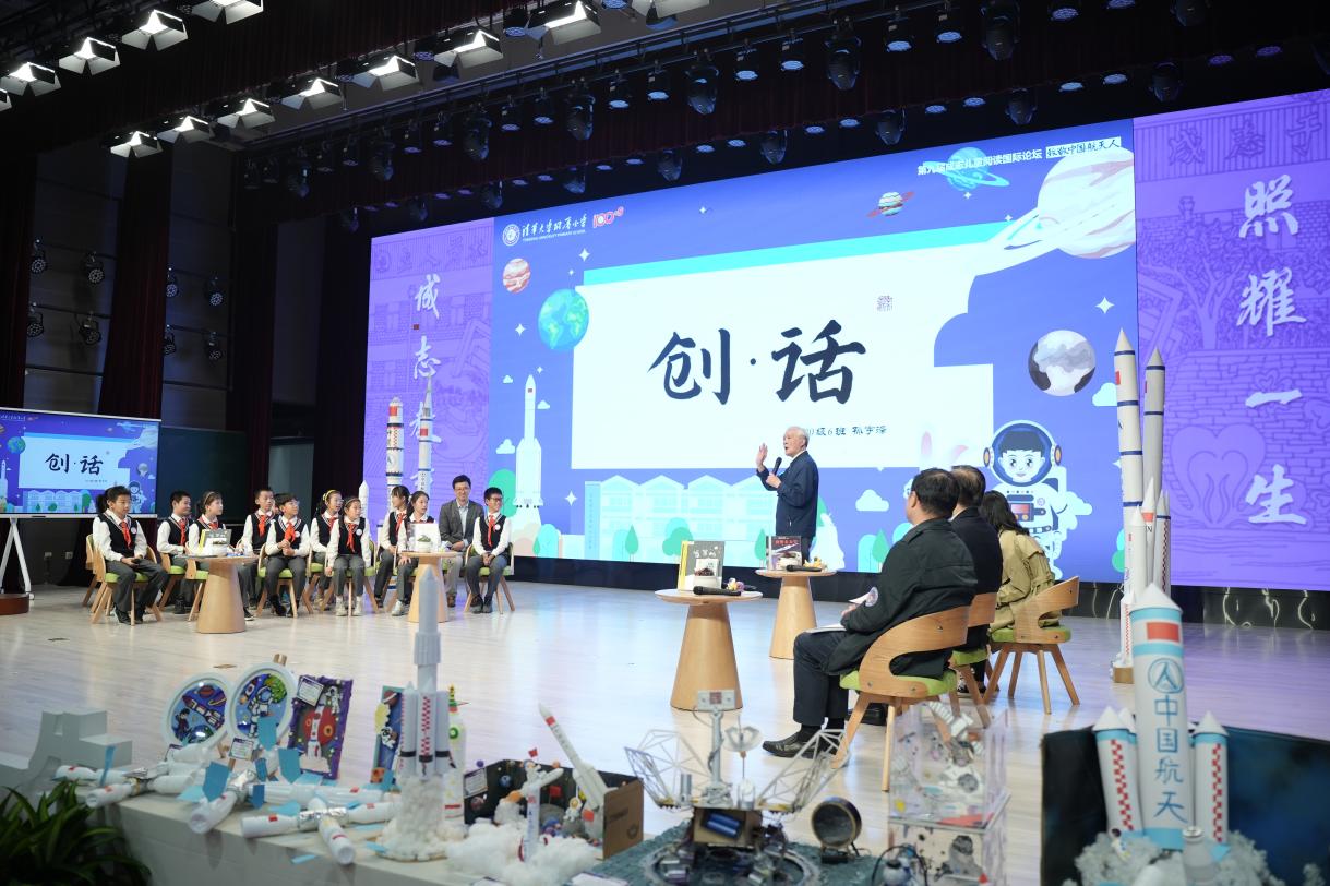对话环节,清华附小学生以“叩问苍穹,致敬中国航天人”为主题,进行了“航天发射场选址问题调研”“月亮的‘水’知多少”和“导航软件之间的较量”小课题研究汇报,学生们的独特视角和研究成果赢得了嘉宾们的阵阵掌声。