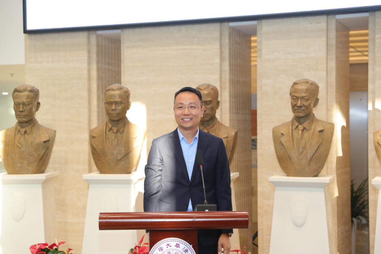 捐赠人代表、“清华校友终身学习支持计划·中国哲学学习班”班长齐伟发言。刘石分别向齐伟、吴雨浓、曹小竹、余霄等捐赠校友代表和清华校友终身学习支持计划·中国哲学学习班、北京博文维欣财务咨询有限公司等捐赠集体代表赠送纪念小像。