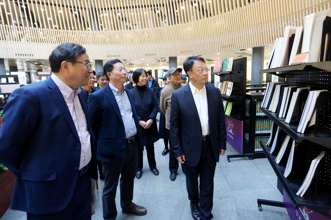 典礼前,与会人员一同参观了纪念乐动平台人文社会科学学院成立30周年学术成果展。王希勤对人文社会科学学科的发展成果表示肯定,希望人文学院、社科学院继承发扬光荣传统,推动清华文科实现高质量发展,为建构中国自主的知识体系贡献清华的智慧与力量。刘石、社科学院院长彭凯平分别介绍了各学科发展情况和代表性著作。