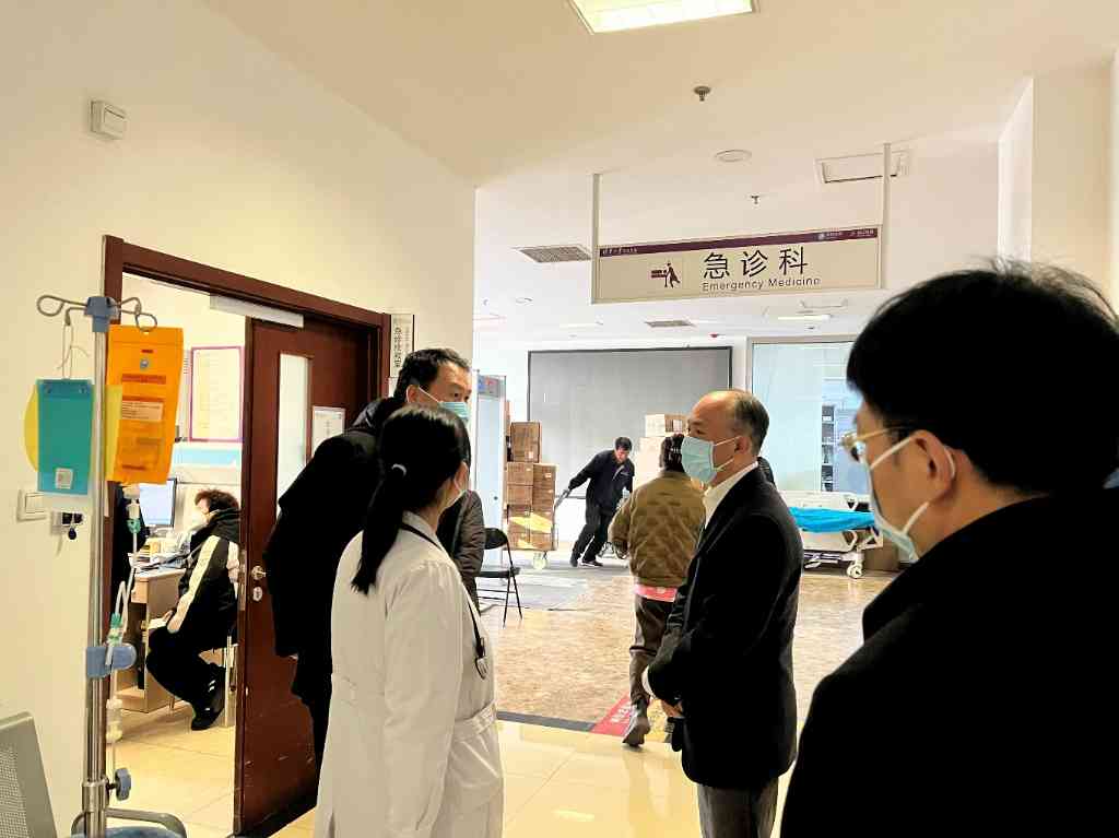 在急诊科,王宏伟了解了夜间和周末的急诊情况,要求医院加强医务管理的联动统筹。在重症医学科,他询问了ICU病房的使用及病人救治情况,并对防火设施进行检查。
