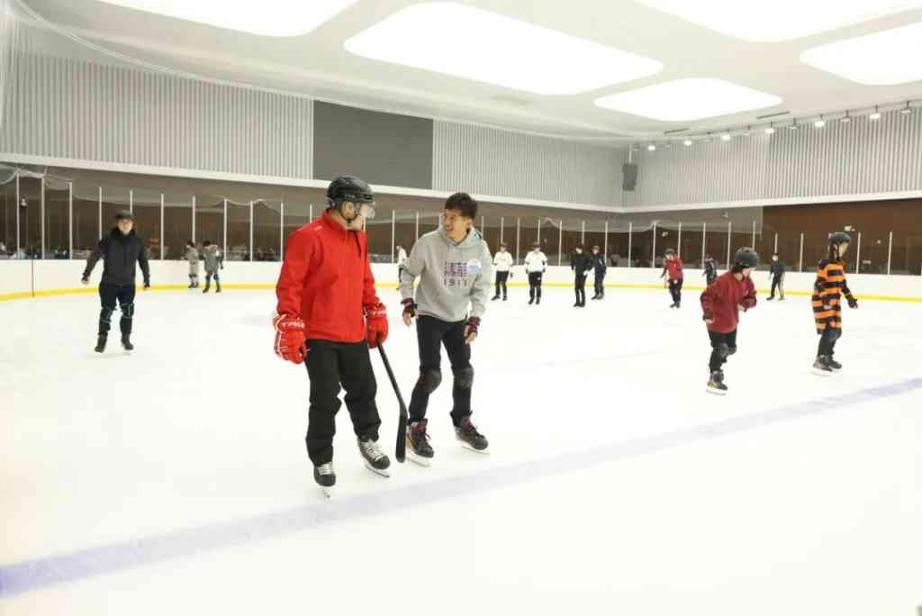 在冰球场体验滑冰