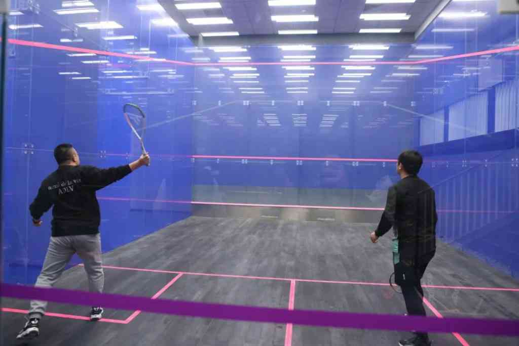 在壁球馆热身和体验壁球