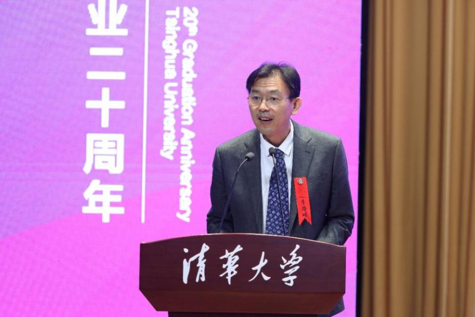 李路明在致辞中与大家共同回顾了2000级校友在校期间共同经历齐心抗击“非典”等珍贵记忆。2000年,全校师生一同见证了清华设计研制的10兆瓦高温气冷实验堆首次成功达到临界;时隔23年,清华牵头研发的全球首座模块式高温气冷堆核电站正式投入商业运行被写入2023年政府工作报告,瞄准国家重大需求、潜心科研攻坚克难,这正是清华人永远的坚守与担当。李路明在介绍学校最新发展情况时指出,今年是新中国成立75周年,也是学校落实教育强国建设战略部署、全面推动高质量发展的关键之年。学校始终坚持把育人放在首位,持续推进“人才强校”的核心战略,坚持“四个面向”开展科研创新,不断推进高水平国际合作。毕业20年的大家正处在人生的关键时刻,希望大家要保持初心、学会坚持,也要在繁重的工作之外多锻炼身体,以饱满的状态、昂扬的斗志,带着母校的期许,不断开创事业的新局面、书写为国奉献的新篇章。
