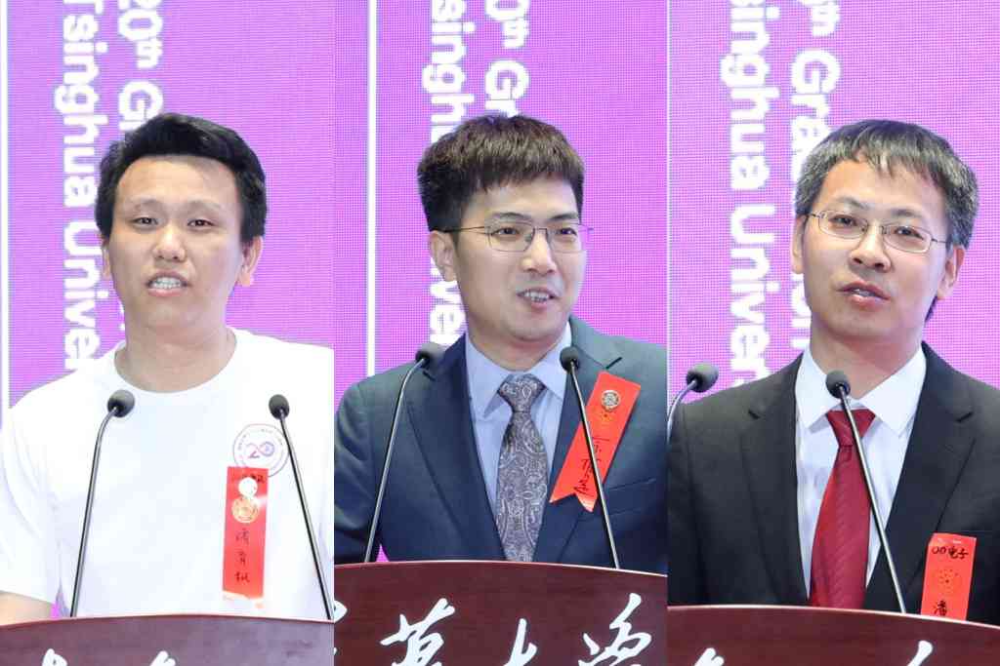 校友代表诸育枫、佘振定、潘时龙发言(从左至右)