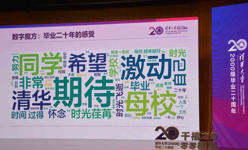 经管学院校友、女高音歌唱家苏小博演唱《飞来的花瓣》,计算机系校友陈强讲解“零字班数字魔方”,将整场大会的气氛推向高潮。“数字魔方”通过追忆往事篇、师生校友篇、事业发展篇、家庭生活篇,勾勒出2000级同学毕业20年来事业、生活的轨迹,引发大家的共鸣。