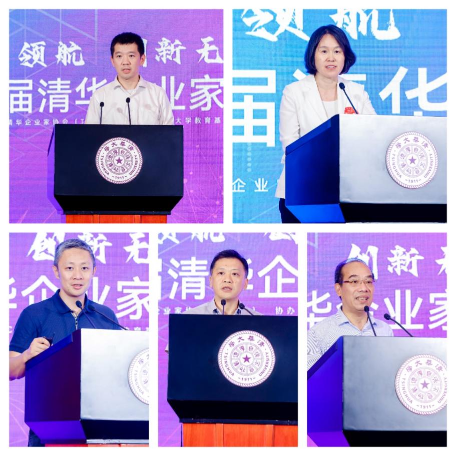 邓锋、孙茂松、薛澜、刘圣、周亚辉作主旨演讲,副校长杨斌主持论坛(从左至右,从上至下)