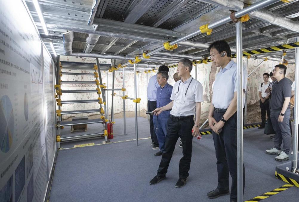 12日,李路明一行前往敦煌研究院,就敦煌莫高窟数字化保护与文物修复等科研成果进行实地调研考察。