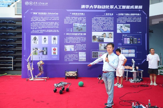 1日上午,自动化系在主楼后厅举行了智能机器人挑战赛开营仪式。自动化系主任张涛在开营仪式上致辞。他希望,通过参加为期三天的智能机器人挑战赛,同学们能收获知识,体验科研乐趣,并规划好未来学习和努力的方向,也希望明年与同学们在清华园再次相聚。随后,张涛作了题为“自动化科技迈向智能时代”的报告。