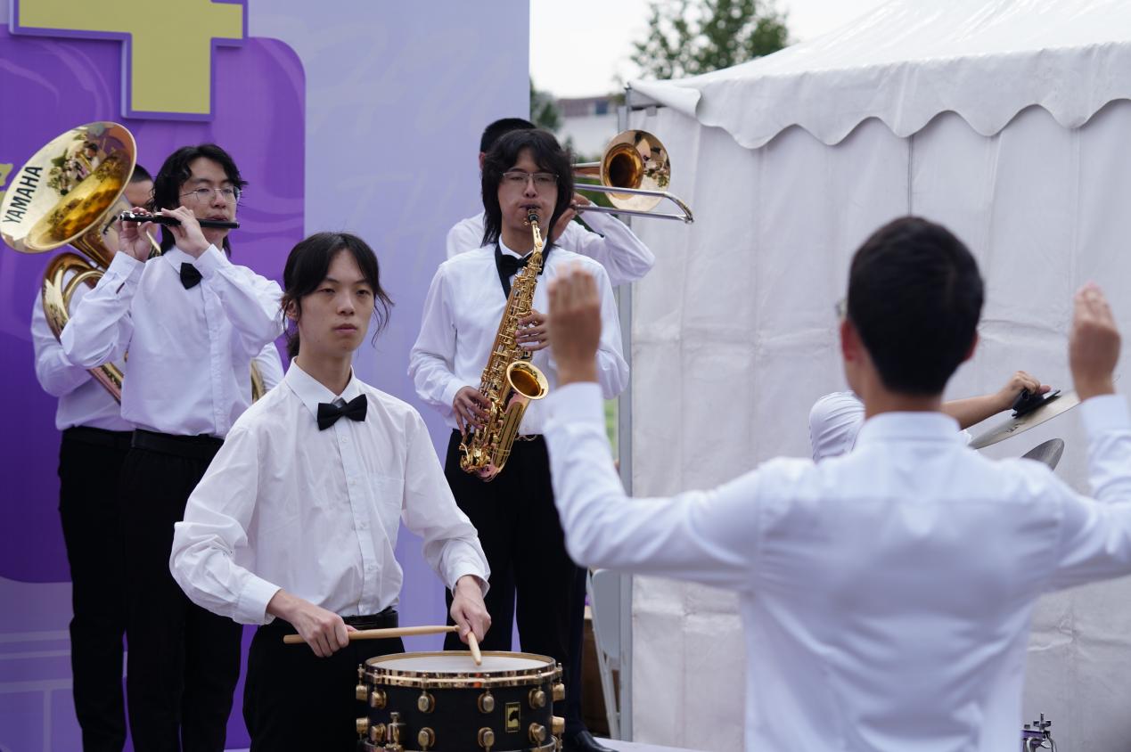 在心愿墙留念、上立体展台展现风采、与各式各样的镂空板合影……一个个精美有趣的迎新主题活动吸引着新生们的注意。学生艺术团更是“快闪”出场,军乐、民乐、合唱、相声等特别节目轮番上演,《你的答案》《强国新一代》等经典曲目激发青春律动。